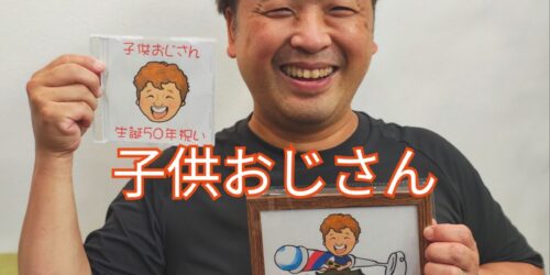 2025年9月29日 こどもおじさん、生誕50周年サプライズプレゼントを届ける 2025年9月29日(月) こどもおじさん、生誕50周年という事で、似顔絵作成画家の山本ちろさんに描いて頂いたイラストを... カテゴリー 店主の独り言